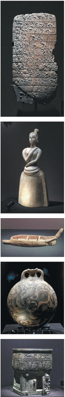 For the exhibition, Bo also prepared a surprise by the gallery exit. Thirteen Chinese artifacts from roughly the same period of Minoan civilization, ranging from jade and bronze vessels to painted pottery from the Palace Museum's collection, are on display.