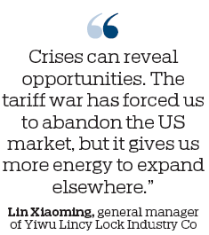 "We've essentially stopped trading with the US," Lin said. "The US used to account for 30 percent of our exports. Over the past few years, this has dropped to under 1 percent. Fingerprint-activated lock exports to the US have also dwindled due to their complex import requirements and order uncertainties."