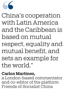 "China's cooperation with Latin America and the Caribbean is based on mutual respect, equality and mutual benefit, and sets an example for the world," Martinez said.