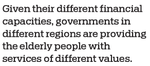 Accordingly, governments at different levels have begun developing a foolproof home care system. Given their different financial capacities, governments in different regions are providing the elderly people with services of different values. In Sanya, Hainan province, I saw elderly people paying just 1 yuan (14 US cents) for lunch in a neighborhood canteen. They are also offered annual medical checkups. In Baoding, Hebei province, volunteers and officials from local residential committees pay regular visits to elderly people living alone in order to attend to the latter's needs, if any.