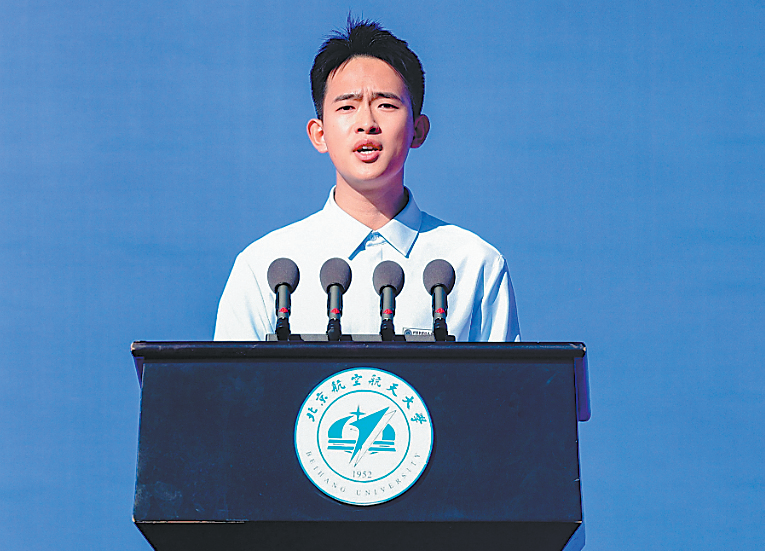 When Sun Yuxuan, a doctoral student from the School of Transportation Science and Engineering at Beihang University in Beijing, stood before thousands of freshmen at the school's opening ceremony in early September and sang On the Songhua River, he was channeling history.