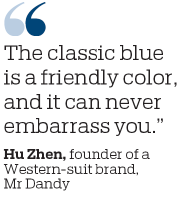 Hu Zhen, 31, founder of Western-suit brand Mr Dandy, says that this shade of blue is the most popular color when his customers purchase customized Western suits.