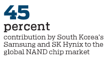Samsung, for instance, is the No 1 producer of NAND chips, a type of flash memory chips, in the world. The South Korean firm accounted for 35.5 percent share of the global NAND chip market in the fourth quarter of 2019, in revenue terms. SK Hynix, the sixth-largest NAND chip maker, accounted for 9.6 percent of the market, according to DRAMeXchange, the memory and storage division of the market research agency TrendForce.