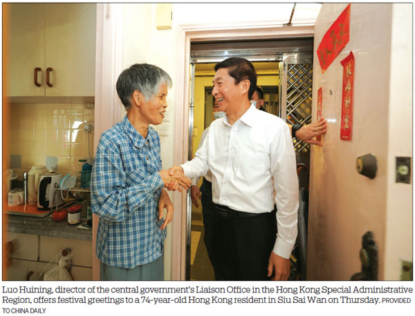 The well-being of Hong Kong's grassroots population has always been at the heart of the central government, Liaison Office Director Luo Huining said on Thursday during a visit to low-income residents in various locations.