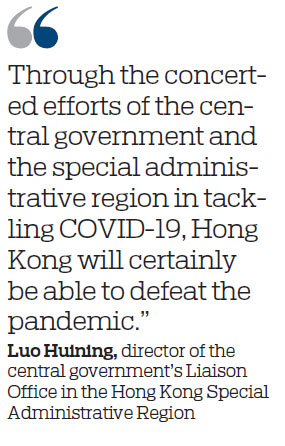 Luo said that through the concerted efforts of the central government and the special administrative region in tackling COVID-19, Hong Kong will certainly be able to defeat the pandemic.