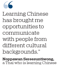 Noppawan Sereesuntiwong, 40, now a small-business owner in Thailand, traveled to China in 2018 to learn Chinese after gaining a master's degree in the UK.