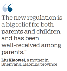 "Some of the training centers have been feeding off parents' anxiety, while ramping up pressure on children to drive business. The new regulation is a big relief for both parents and children, and has been well-received among parents," says Liu Xiaowei, a mother in Shenyang.