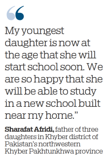 ISLAMABAD-Sharafat Afridi, father of three daughters in Khyber district of Pakistan's northwestern Khyber Pakhtunkhwa province, eagerly awaits the completion of 50 schools being gifted by the Chinese government to the children in his district to restart their education by getting back to school.