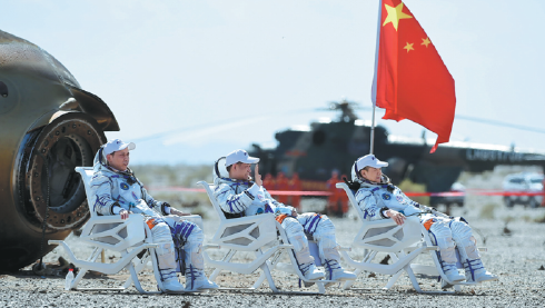 The first astronauts inside Tiangong-Major General Nie Haisheng, Major General Liu Boming and Senior Colonel Tang Hongbo-finished their 92-day Shenzhou XII mission in mid-September.