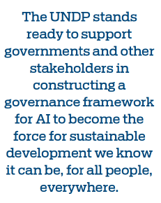 The UNDP stands ready to support governments and other stakeholders in constructing a governance framework for AI to become the force for sustainable development we know it can be, for all people, everywhere.