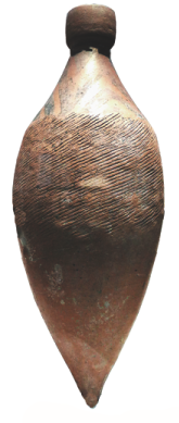 The bottle features a small mouth and a tip bottom. Researcher identified it was an item some 6,000 years old but were not sure about its function at first.
