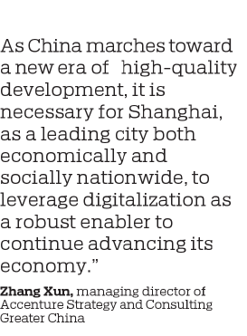 Zhang Xun, managing director of Accenture Strategy and Consulting in Greater China, said digitalization is an important strategy for Shanghai to forge ahead as a world-class city. He also noted that the digitalization should not be regarded merely as an upgrade of internet technology.