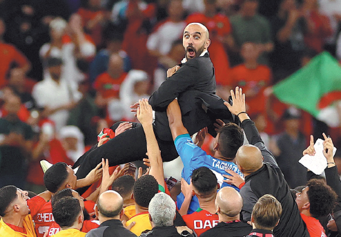 While a tearful Ronaldo headed right down the tunnel — and maybe into international retirement — after the final whistle, Morocco's players tossed their coach in the air and waved their country's flag as they linked arms in front of celebrating fans.