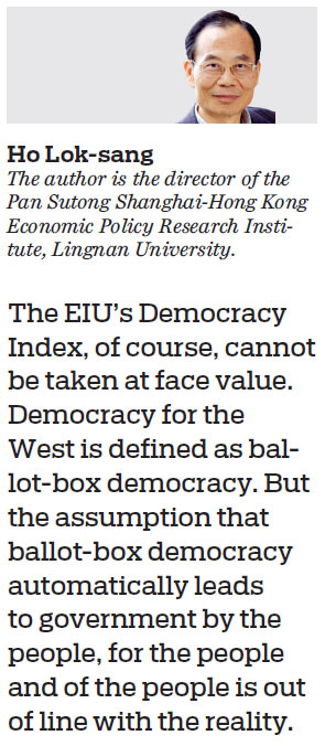 The EIU's Democracy Index, of course, cannot be taken at face value. Democracy for the West is defined as ballot-box democracy. But the assumption that ballot-box democracy automatically leads to government by the people, for the people and of the people is out of line with the reality. The 2022 Democracy Perception Index by the Alliance of Democracies shows that in China, the percentage of people who think their country is democratic stands at 83 percent, considerably higher than the United States' 49 percent. Yet the EIU Democracy Index ranked the US at 30th, while China was relegated to the near-bottom position of 156th.