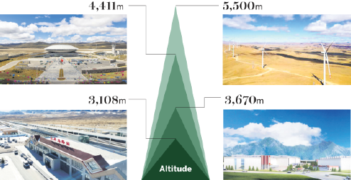 At an elevation of 3,108 meters, Shandan Junmachang Station is the highest point on the Lanxin (Lanzhou-Xinjiang) High-speed Railway and the highest high-speed railway station in the world. The annual average temperature is around-4 C, and the oxygen content of the ambient air is lower than 80 percent of that found at sea level.