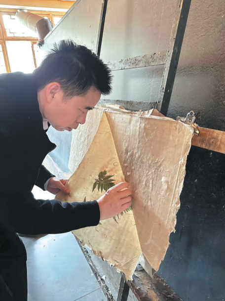 The entire process is done manually using natural materials, and the paper has renowned characteristics, such as its flexibility, gloss and strong water absorbency, Wang says.