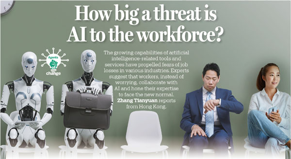 The growing capabilities of artificial intelligence-related tools and services have propelled fears of job losses in various industries. Experts suggest that workers, instead of worrying, collaborate with AI and hone their expertise to face the new normal. Zhang Tianyuan reports from Hong Kong.