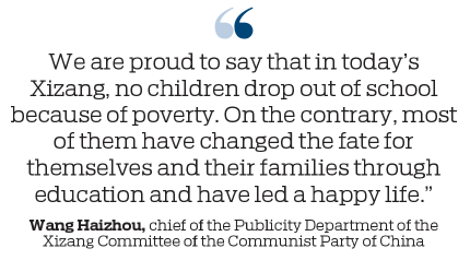 "We are proud to say that in today's Xizang, no children drop out of school because of poverty," Wang said. "On the contrary, most of them have changed the fate for themselves and their families through education and have led a happy life."
