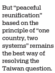 A conflict cannot be ruled out if "Taiwan independence" forces go too far. But "peaceful reunification" based on the principle of "one country, two systems" remains the best way of resolving the Taiwan question.