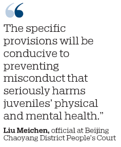 Liu Meichen, a judges' assistant at Beijing Chaoyang District People's Court, welcomed the anti-cyberbullying part of the regulation, saying "the specific provisions will be conducive to preventing misconduct that seriously harms juveniles' physical and mental health."