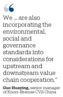 "We are not only gradually promoting low-carbon production ourselves, but are also incorporating the environmental, social and governance standards into considerations for upstream and downstream value chain cooperation," said Guo Huaying, senior manager of Knorr-Bremse CVS China.