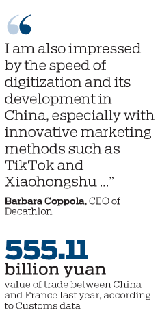 "I think Decathlon can be a unique link to strengthen the relationship between the two countries. We can not only share innovations but also build more win-win business partnerships," she said.