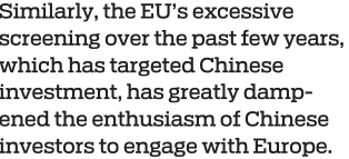 Similarly, the EU's excessive screening over the past few years, which has targeted Chinese investment, has greatly dampened the enthusiasm of Chinese investors to engage with Europe. This is sad, because Chinese investors could contribute to the massive 800 billion euros ($880.67 billion) annual investment target set by Draghi to boost the EU's economic growth.