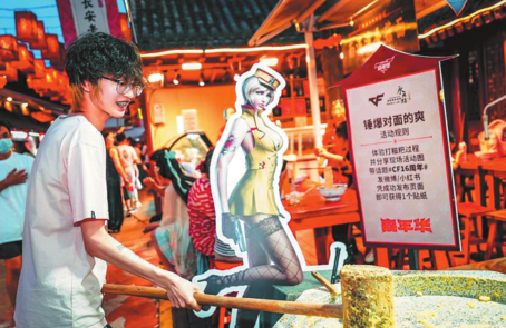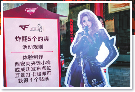 In addition to the interactive installation near the Giant Wild Goose Pagoda, Bai also visited other spots with game elements that led him to interact with vendors and experience culture and food in Yongxingfang, such as roujiamo (Chinese meat sandwich) and biangbiang noodles, a local dish in the province.