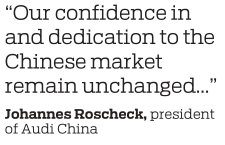 German carmaker Audi is confident in China, with a comprehensive strategy in place to sharpen its competitive edge in the world's largest vehicle market, said Audi China President Johannes Roscheck.
