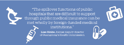 "Accounting for the dominant 80 percent of the country's total medical services, public hospitals stick to their priority of answering the demands of public welfare," said Liao Xinbo, former deputy director of Guangdong's Health Commission. "The spillover functions of public hospitals that are difficult to support through public medical insurance can be met wholly by foreign-funded medical institutions," Liao added.