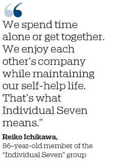 Reiko Ichikawa, 86, who lives near the condo, added: "We spend time alone or get together. We enjoy each other's company while maintaining our self-help life. That's what Individual Seven means."