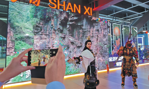 In addition to tourism sites relating to the game, Shanxi's landmark attractions like the Yellow River, the Great Wall and the Taihang Mountains are also showcased on a big display screen at the Shanxi pavilion.