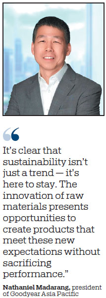 According to Nathaniel Madarang, president of Goodyear Asia Pacific, sustainability is fundamentally changing the tire industry, with consumers and regulators increasingly demanding more eco-friendly products.