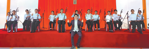 Li says that thanks to the erhu courses offered by other musicians of the company, the students have made progress and are capable of playing many music pieces.