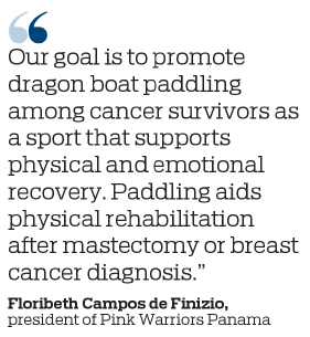 This was the goal of Floribeth Campos de Finizio, president of Pink Warriors Panama, when she started the dragon boat team with 14 members five years ago.