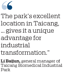 "The success of the park hinges primarily on its ability to leverage its own advantages," said Li Baijun, general manager of Taicang Biomedical Industrial Park. "The park's excellent location in Taicang, just 60 kilometers from Suzhou BioBay and 65 km from Shanghai Zhangjiang Pharma Valley, gives it a unique advantage for industrial transformation."
