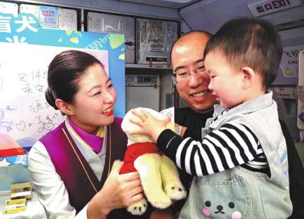 China Southern Airlines recently hosted a guide-dog-themed event aboard a flight from Dalian, Liaoning province, to Guangzhou, Guangdong province. Guide dog trainers were invited to educate passengers on assisting the visually impaired, fostering greater acceptance of traveling with guide dogs.