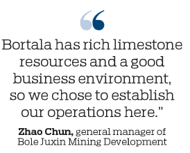 The prefecture's traditional limestone industry is one example of the strong growth momentum. Bole Juxin Mining Development, a company that is based in Bortala's Bole city, is now engaged in equipment commissioning and debugging. Once completed, it will mine 3.6 million metric tons of limestone and produce 400,000 tons of calcium oxide annually.