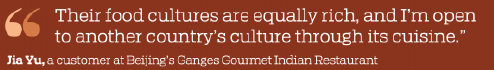 "China and India are both populous countries with long histories as two of the world's four great ancient civilizations. Their food cultures are equally rich, and I'm open to another country's culture through its cuisine," said Jia Yu, another customer.