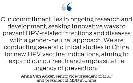 "We are very excited. We had a major indication change for our female HPV vaccine with an expansion of the age in 2022. Now we don't only protect females, but also males, families, communities and society," said Anna Van Acker, senior vice-president of MSD and president of MSD in China.