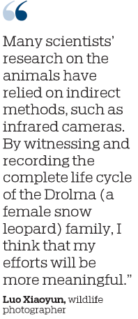 Luo expressed his commitment to observing and documenting snow leopards. "We humans are still short of direct observations of enigmatic species like snow leopards," Luo said. "Many scientists' research on the animals have relied on indirect methods, such as infrared cameras. By witnessing and recording the complete life cycle of the Drolma family, I think that my efforts will be more meaningful."
