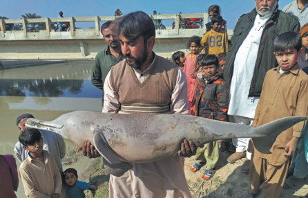 On Jan 13, 2024, a blind dolphin was found dead in the Bago-Jango section of a canal in Sukkur district. It had been forced to flee shallow waters in search of deeper ones as a result of water level reductions caused by annual maintenance at the Guddu and Sukkur barrages.