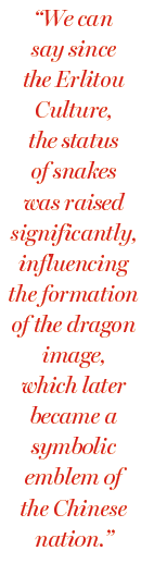"We can say since the Erlitou Culture, the status of snakes was raised significantly, influencing the formation of the dragon image, which later became a symbolic emblem of the Chinese nation," he says.