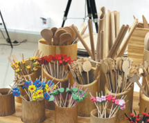 Bamboo consumables, including single-use knives, forks and toothbrushes, are designed for replacement within three months, aligning with efforts to reduce plastic usage. Some items, like bamboo sticks, are now produced automatically by machines.