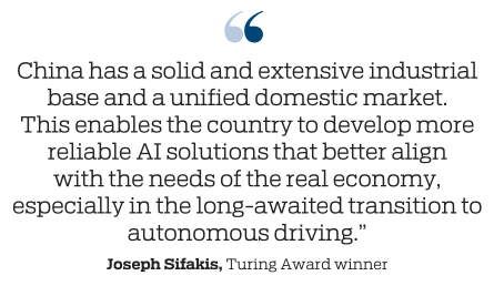 Sifakis noted that China's strong industrial foundation, in particular, gives it an edge while industries such as self-driving vehicles, smart cities, smart factories and intelligent farms present more opportunities. "If developed well, (all these) will give China a dominant position in industrial AI," he said.