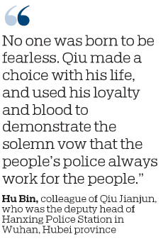"No one was born to be fearless. Qiu made a choice with his life, and used his loyalty and blood to demonstrate the solemn vow that the people's police always work for the people," Hu said.