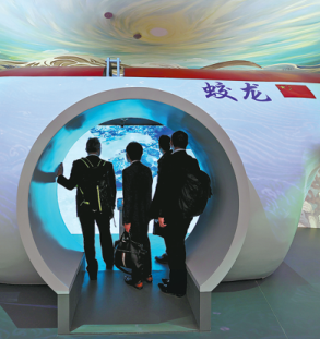 China's highlights include side-byside displays of lunar soil samples collected by China's Chang'e missions, the Jiaolong deep-sea submersible experience capsule and next-generation humanoid robots.
