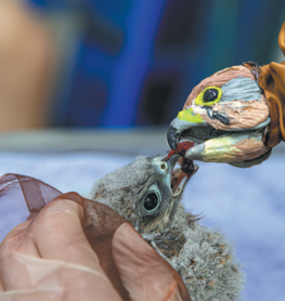 "To prevent the fledglings from developing incorrect imprinting behavior toward their human caregivers, our rehabilitator wears a hat covered with gauze and some decorations to hide her face and holds a puppet in the shape of a bird of prey to use its simulated beak to feed the fledglings, just like in the wild," said Zheng.