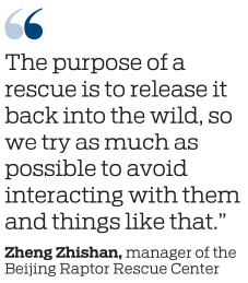Baby birds that have fallen from their nests are also treated at the center. Zheng, the center manager, said raptors develop imprinting behavior at one to four weeks after hatching.