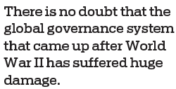 There is no doubt that the global governance system that came up after World War II has suffered huge damage. And since the US only accounts for 13 percent of global trade, the EU should not hesitate to take the lead and join others to preserve the system for the remaining 87 percent of world trade. They should include countries with differences because sustaining the global system is far more important than anything else at the moment.